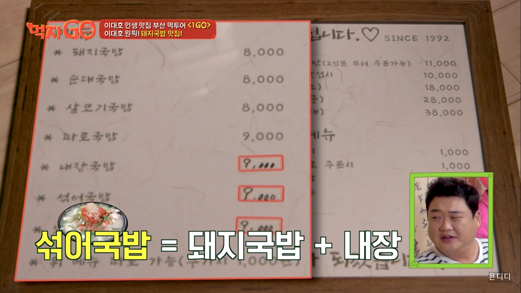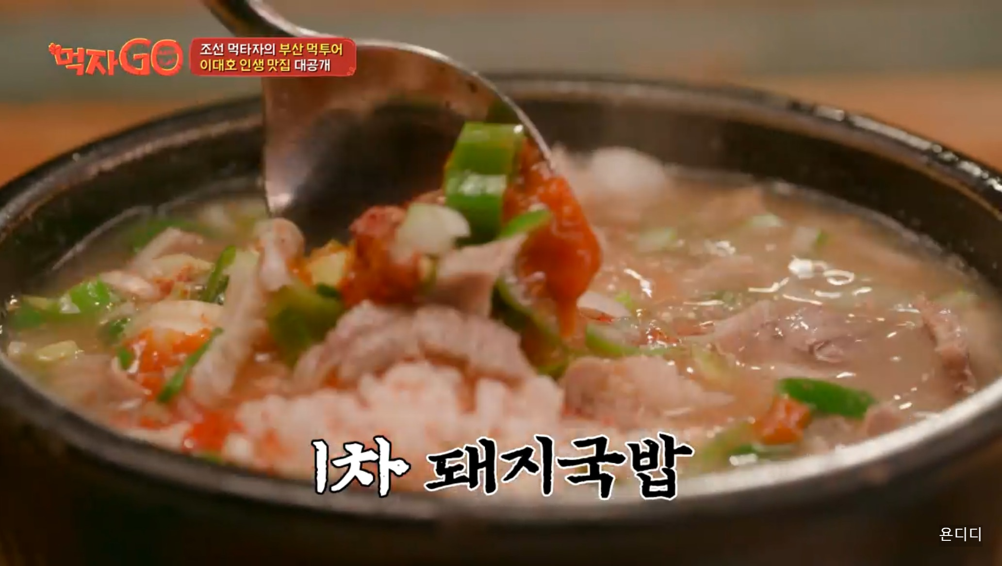 먹자고 부산 이대호가 첫번째로 추천한 음식은 부산의 대표음식 '돼지국밥' 입니다.