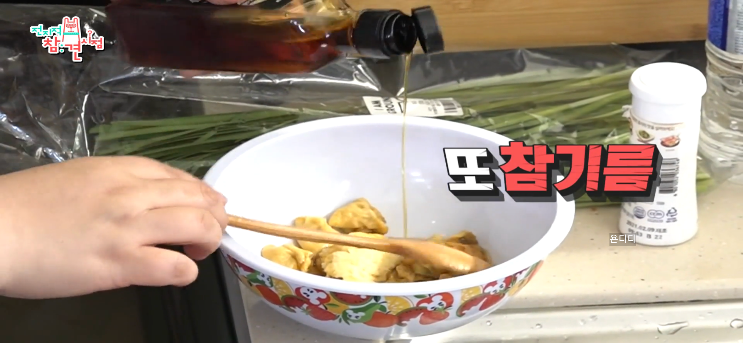 2. 참기름을 두 바퀴 돌려줍니다.